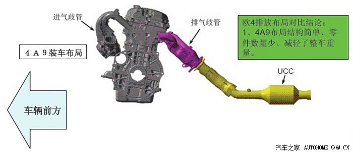 3、树脂材料进气歧管与摇臂室盖、反置排气歧管:大部分常规发动机采用的是铝制或铸铁进气歧管,排气歧管前置。4A91如此设计,可以达到减轻重量、降低油耗、节约成本的目的。但低速工况下,可能会出现进气不足的情况,需要经过精心的设计与调教来弥补,4A91在这点上解决的不错。