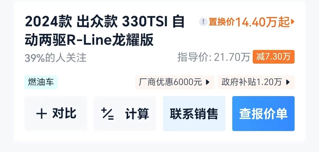 24款途观L龙耀330 全款纯裸车减去厂家6000置换补贴 裸车价168000,这个价格可以入手吗
