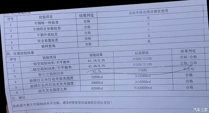 今天年审整车空载制动率不合格,复检3次才合格,一共检了4次。