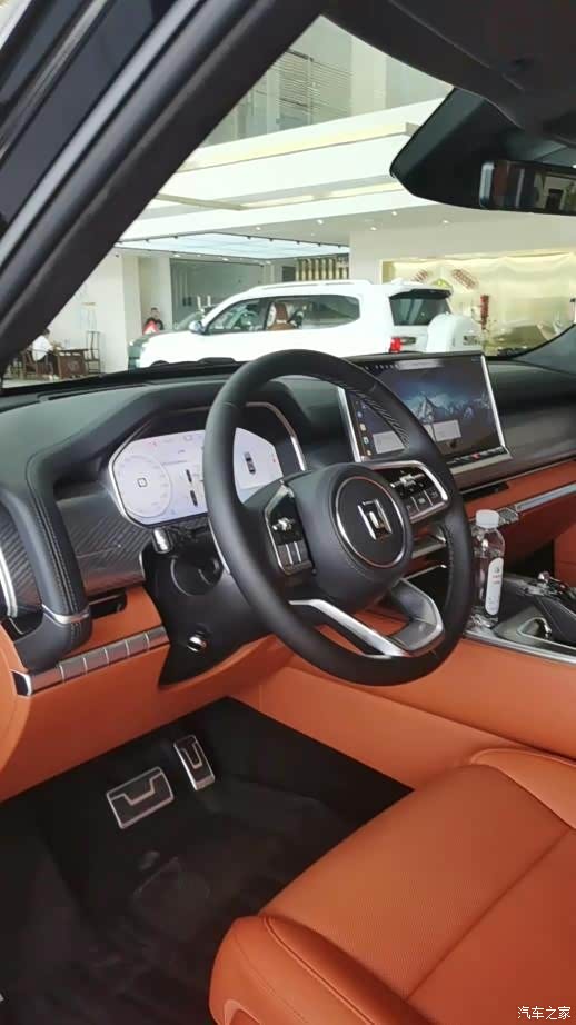 一到试驾地,这车给我的第一印象就是“气场十足”。整车设计完全保留了坦克家族的硬朗线条,但在细节上多了些科技感,特别是前脸的这个灯组,夜间开起来肯定拉风。外观看够了,我赶紧上车。打开车门,迎面而来的是大面积的皮革包裹和氛围灯,豪华感满满!中控屏的操作界面简单明了,科技感扑面而来。