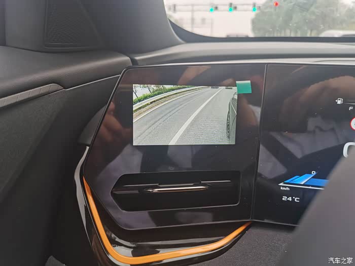 当我们打转向灯或者左转弯时,小屏竟然可以将左前轮毂画面投出来,再也不用担心转弯过快剐蹭马路沿了,亲身经历