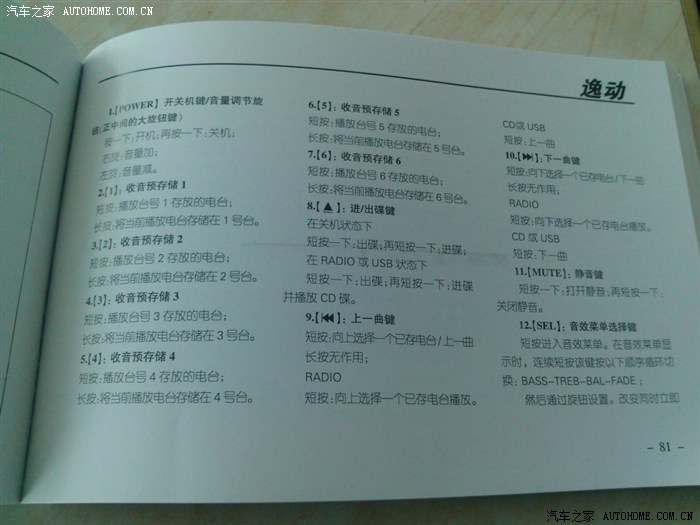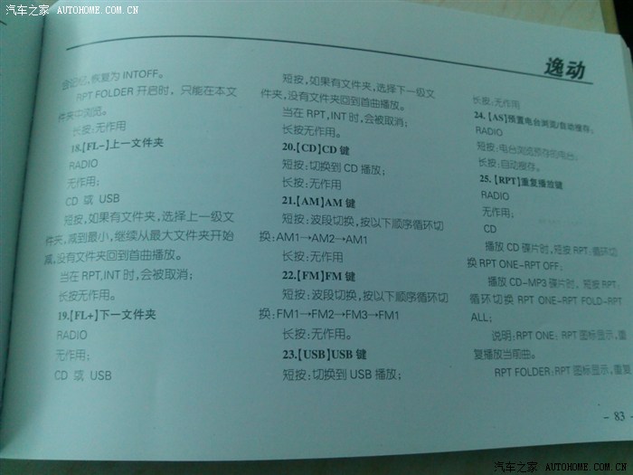 下面是逸动说明书照片 像素不大给力 凑合一下