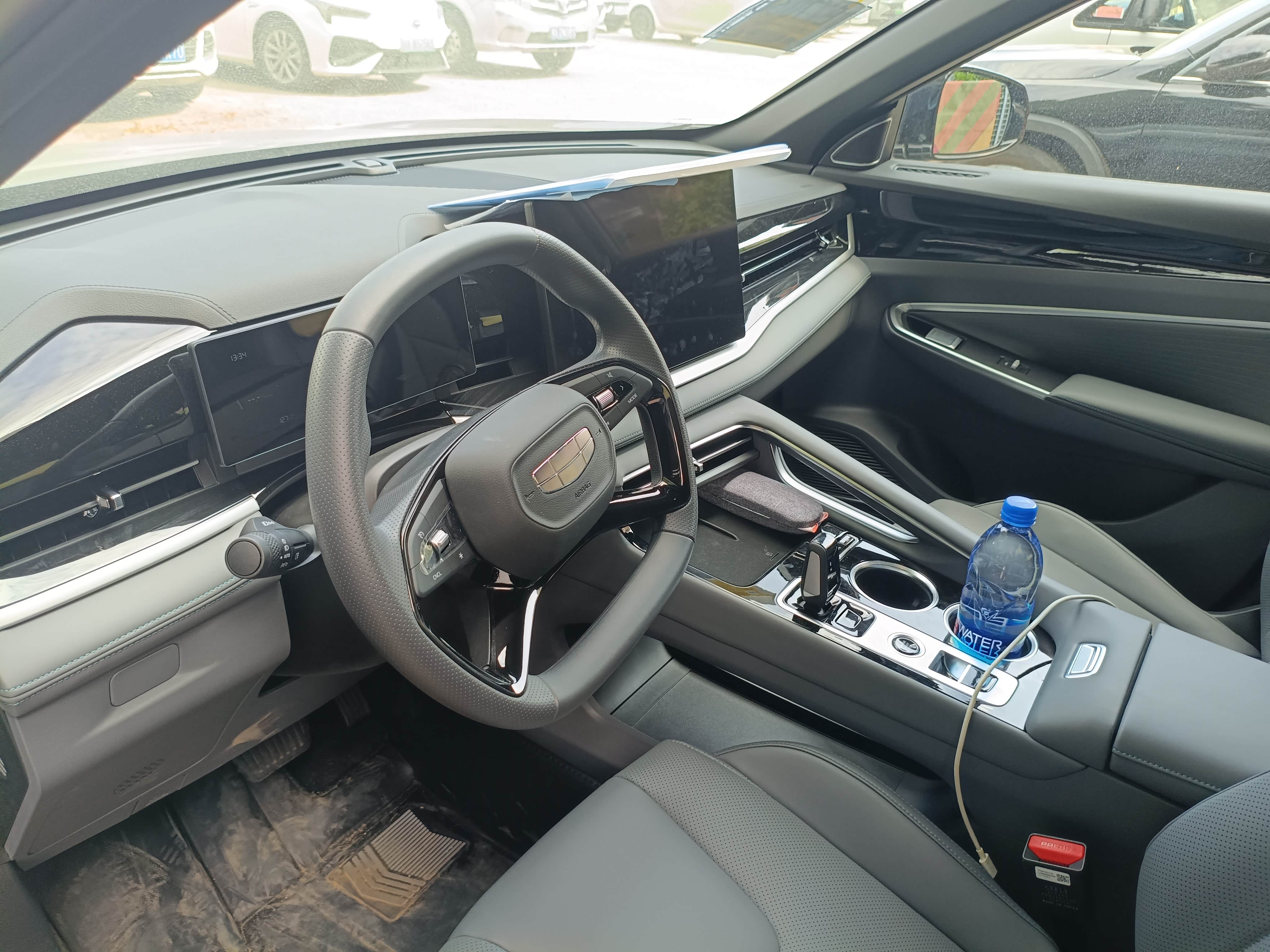 到店时销售已经把车停在展厅门口,白色车身在阳光下很显干净,车头的水波涟漪格栅比图片更精致。先跟着销售验车:绕车三圈查外观,车漆没划痕,轮毂也没磕碰;打开车门,米棕拼接的内饰没异味(之前还担心新车味重,看来厂家处理得不错),座椅是皮质的,摸着手感软;打开发动机舱,销售指着机油尺和防冻液壶教我看,说博越的1.8T发动机耐造,日常家用足够;再看轮胎,生产日期是今年9月的,新鲜出炉。