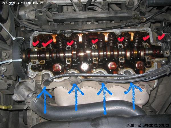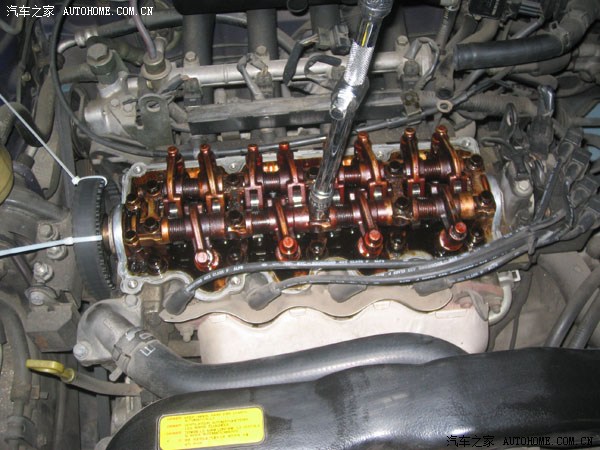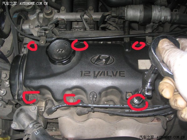 我朋友有辆老款韩国现代车,车的年龄有点偏大,具体有多大,反正我没问过。最近一段时间出现气门响,而且响声非常大,有点向柴油拖拉机的动静。打开机器罩盖后,发现凸轮轴、摇臂部位非常脏,颜色非常污浊。问其原因,答曰:更换机油从不看型号、规格,市场上那种便宜就加哪种机油,甚至还用过柴机油和汽机油混加的方式。晕了。从机器外观上观察分析,当务之急,清洗凸轮轴和摇臂,估计有油路堵塞情况。下面就是拆卸摇臂和清洗的过程,供车友们分享。。。