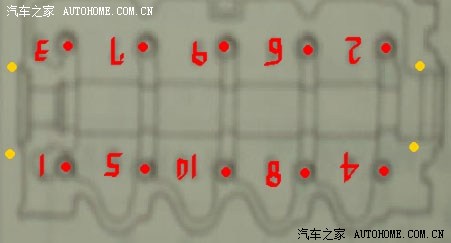 拧螺丝的时候,是跟松螺丝恰恰相反。要从中间向两边拧,顺序正好是相反的。也是每个螺丝分多次拧才可以的,不要一次性就拧紧了,这样会使气门室盖子变形的。切记!