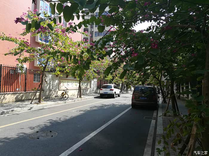 在这条小路上停好车,边上是法院的家属区。