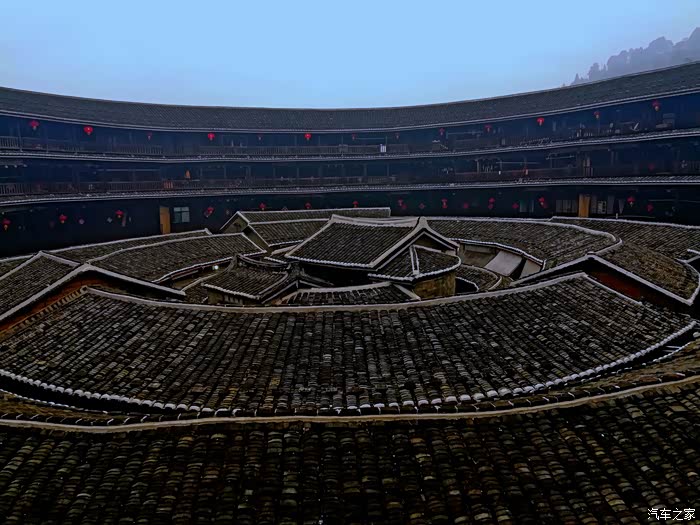 永定土楼王--承启楼,登上楼后,俯视全局。