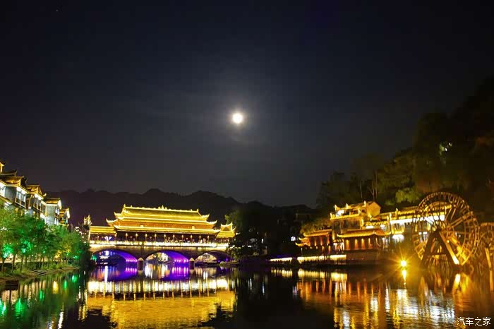 月色皎洁、灯火璀璨,在船只的点缀之下,这是我觉得凤凰古城夜晚最美的一张照片