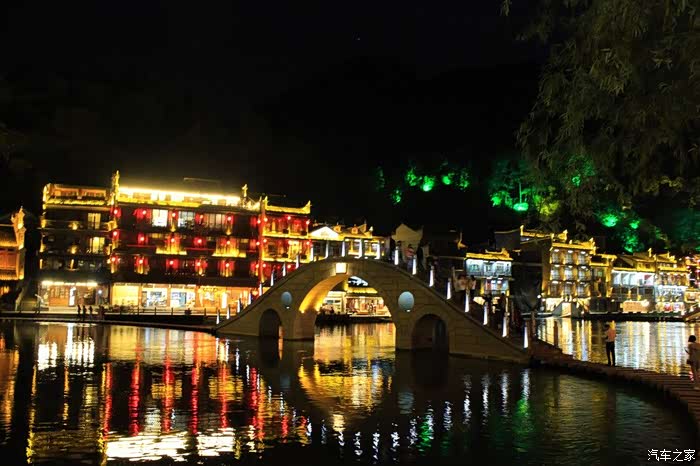 凤凰古城(夜景):凤凰古城有中国最美丽小城的美名,与云南丽江古城、山西平遥古城媲美,享有“北平遥,南凤凰”之名。是国家历史文化名城,也是本次旅游唯一的4A级景区。(张家界全5A),具有四百多年历史的凤凰古城夜晚与白天的风貌截然不同,虽然近年严重的商业化导致环境品质下降,但仍不减这魅力湘西凤凰风情。