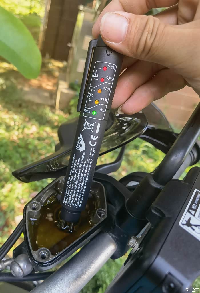 这辆水鸟是我6万公里接手的,关注我的朋友知道我前面保养维护了很多,但唯独没有检查刹车油和齿轮油。这次买了一只刹车油测试笔,测了才知道水分都爆表,所以大家记得1到2年检查一次刹车油。