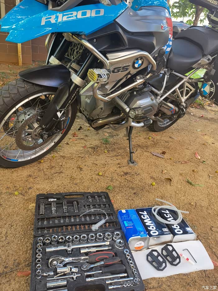 R1200gs水鸟换刹车油,后牙包齿轮油,换加大脚踏