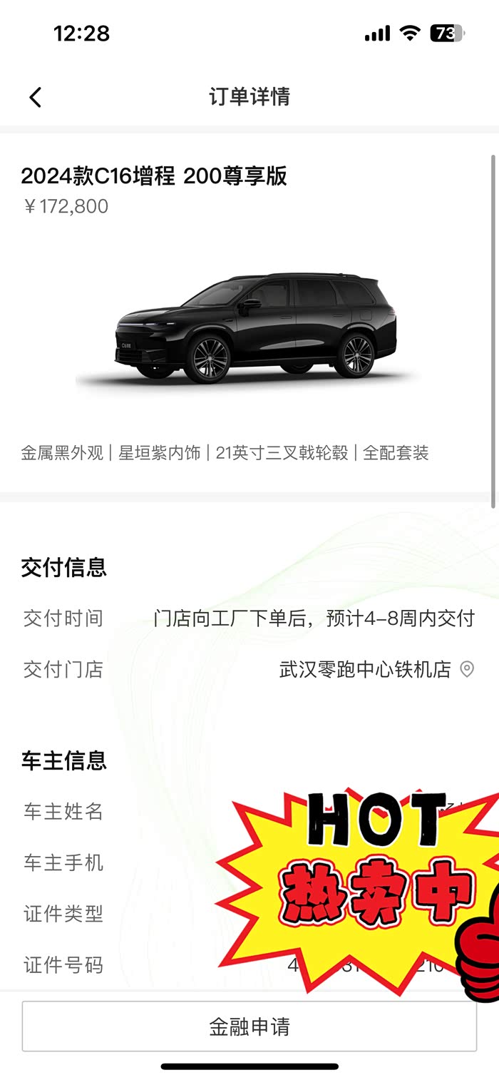 因为错过了7月的小定1000抵5000我感觉还是有些肉痛,销售就安慰我,说是8月8日起到8月18日有零跑818嗨购活动,每天在直播间抽奖,最高能中18888的尾款抵扣券。我开始每天关注当日中奖名单,一直看到8月18号都还没有我的号码,我就想着算了吧,这个价位已经够可以了,没中就没中吧。直到销售第二天发消息通知我中奖了,我马上进APP里面看,我的券包里多了个1888元的尾款抵扣券。我感觉特别幸运,湖北的购车置换补贴刚好也迎来了翻倍,原本5000的置换补贴现在涨到了12000元。买C16真是我今年来做的最正确的一个决定。