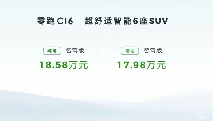 直到大概是5月份,我在网上刷到有关零跑C16的相关视频。当时宣传的是满配20万之内中型大六座的SUV,据我了解新能源中大型6座SUV的价格普遍在25万元以上,配置豪华一些的价位更在30万以上。而零跑C16则直接把这个价格打了下来,大6座布局,标配8295芯片,把激光雷达、小桌板、“大彩电"这些豪华配置点满,这个性价比让我期待值直接拉满,我就开始关心C16什么时候上市开售,看一些汽车博主对C16的沉浸式测评视频,越看越期待。等到6月底零跑发布会,公布的价格比我想象中的还要再低一点。
