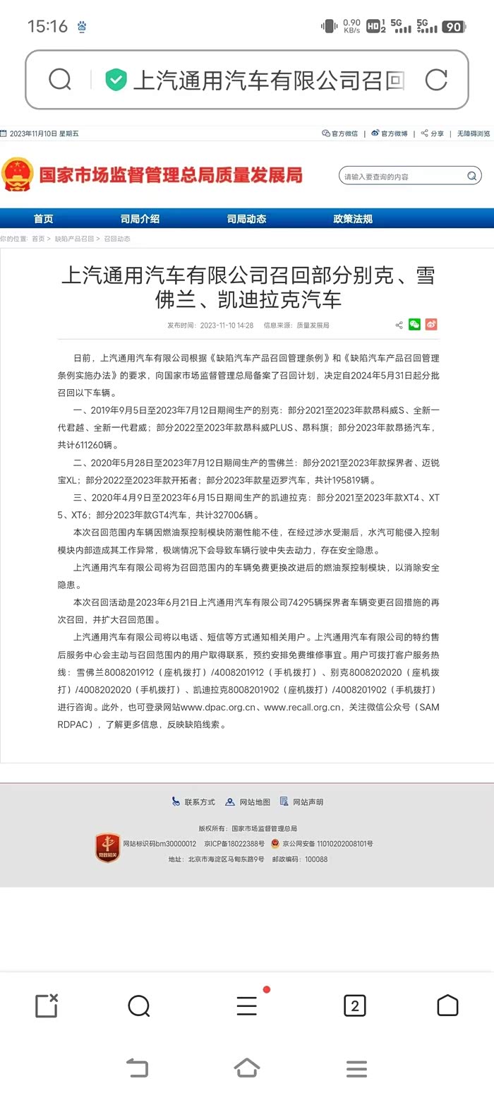 别克终于正面回应燃油泵控制模块缺陷问题了,正式全面召回更换
