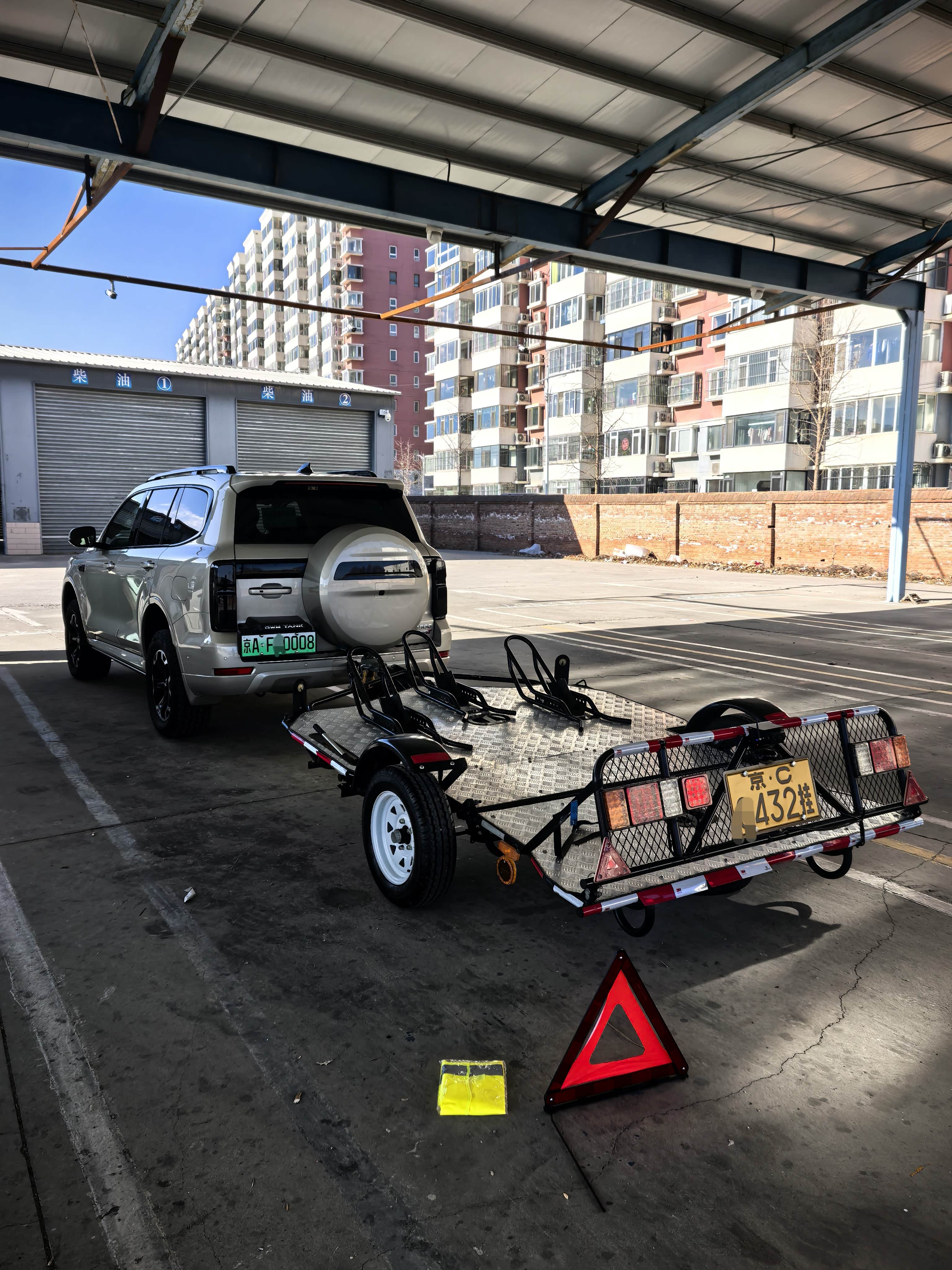 作为一个摩托爱好者和户外爱好者,在选车时就明确了车型需是硬派越野,并有牵引资质,这样就可以合法上路,拖着自己的小摩托自驾游了,而且拖挂式房车或摩托拖板都是需要一年一检,验车时是需要头车具有牵引资质的(图 2)。坦克系列的车完美的符合了我的用车需求,驾乘体验舒适,内饰豪华,26 款的全新 坦克 500 hi4t 又配备了智驾功能,让上千公里的自驾旅途更轻松!