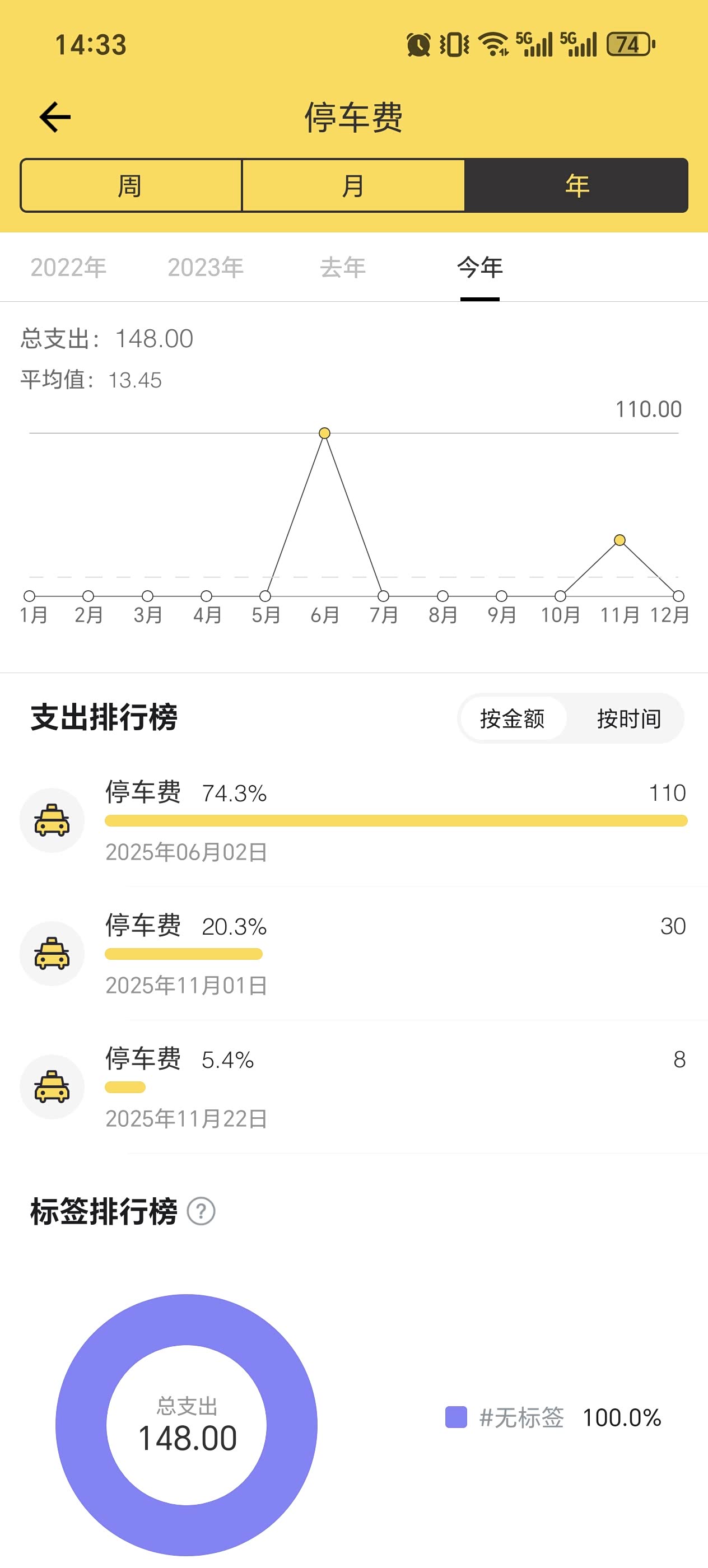 再就是2025年到现在的停车费用!我住的小区里面停车费每个月100元,相当于12个月1200元!再加上我在外面,平时停车的费用是图片中这些费用150元左右。这样累计2025年的停车费是1350左右!
