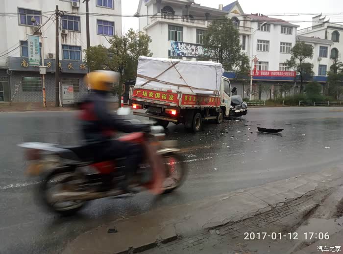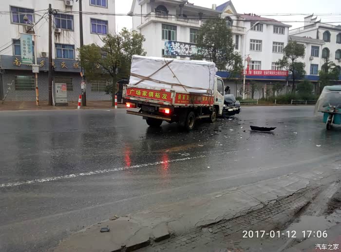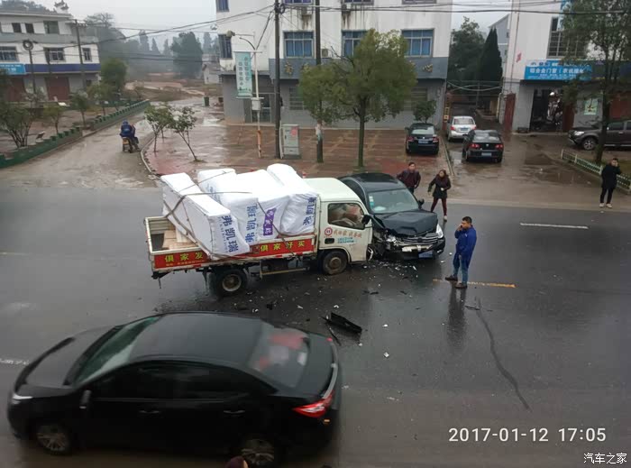车祸经过:运送家具的小型货车在进入车祸现场之前刚驶完300M左右的一段下坡路,雨湿路滑,满载货物,为这场车祸埋下了伏笔。黑色老款轩逸从水泥乡道驶出穿过319国道去对面饭庄吃饭。这注定是一场无法逃避的车祸,当时黑色老款轩逸前轮已越过马路中间黄线,高速行驶的小货车在“下坡路,雨湿路滑,满载货物”无法及时刹车,猛烈的撞击了黑色老款轩逸的车头左侧,把黑色老款轩逸向前推移了有十多米的位置才停下。