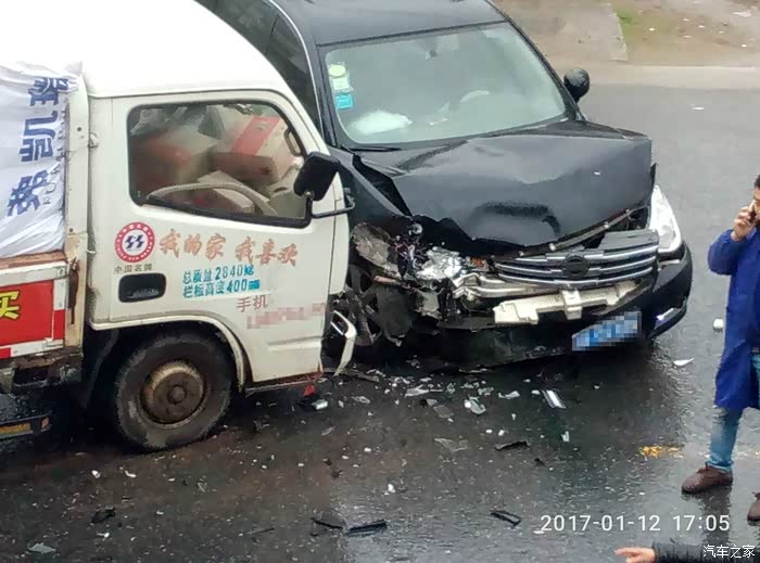 2017年首个轩逸车祸,带你进入车祸现场,开车须谨慎,雨天要慢行