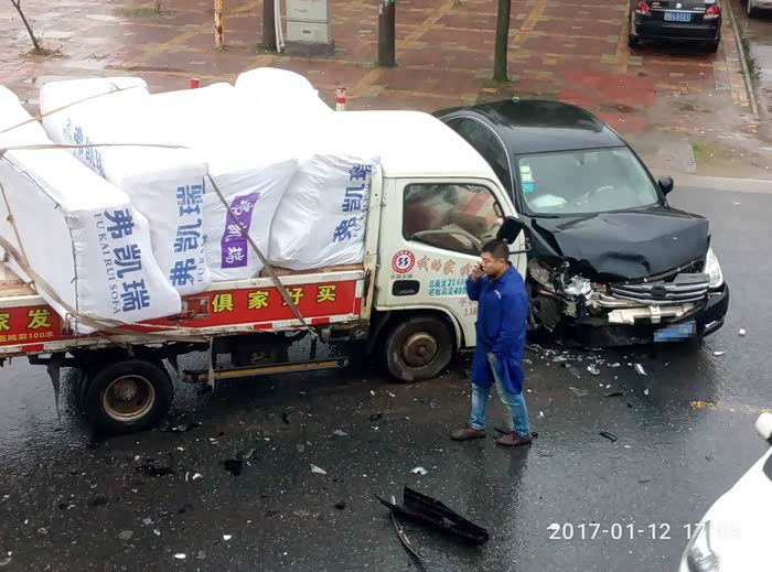 肇事车辆:运送家具的小型货车(不知什么品牌)PK 黑色老款轩逸。
