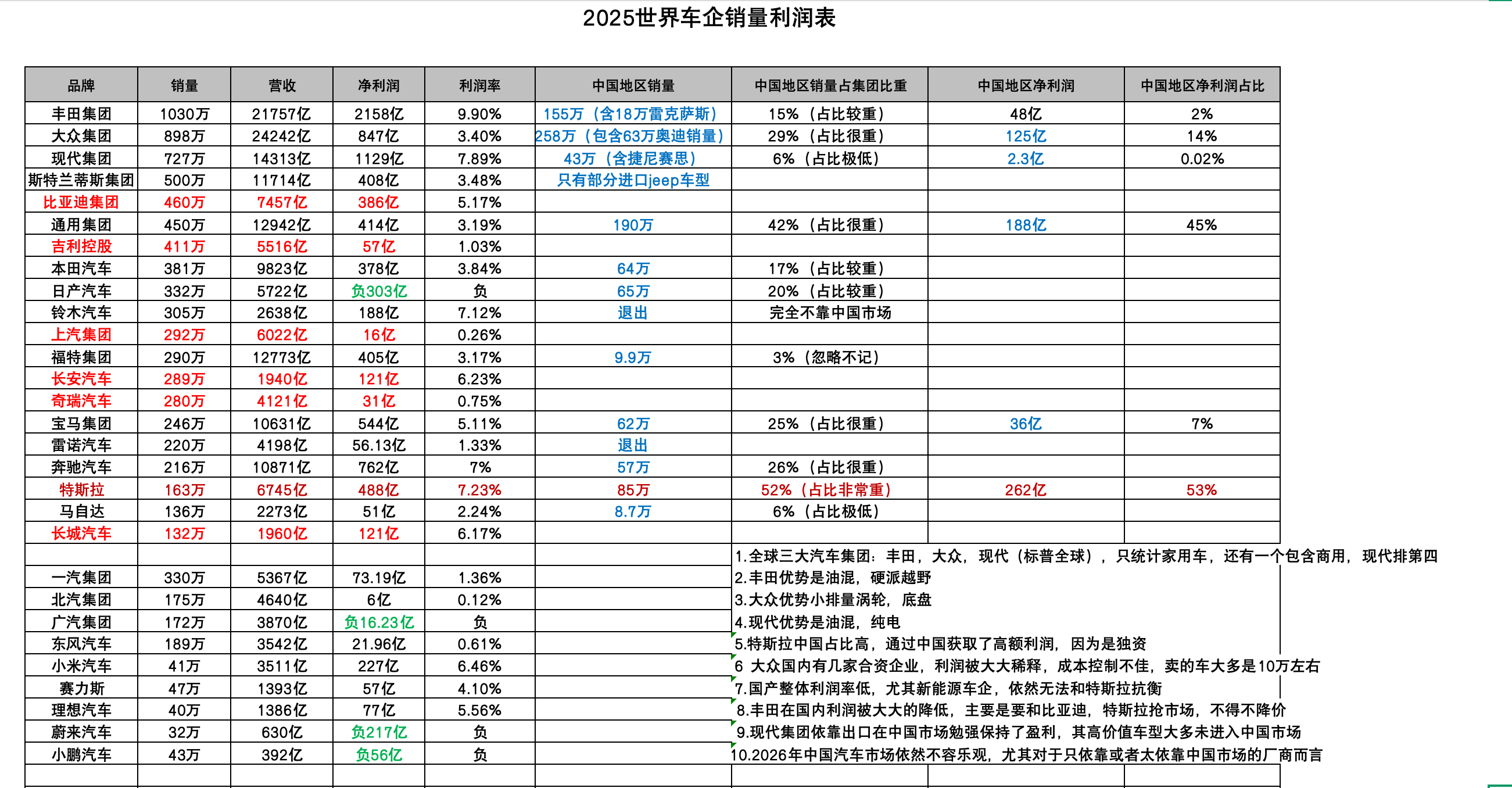这里面反差最大的是上气,奇瑞,现代,铃木,上气曾经连续10几年都是大陆销冠和净利润冠军,旗下车型有大众,奥迪,别克,斯克达等.如今利润率低的快要赔本的感觉.奇瑞作为中国出口最多车企,因为出口大部分地区是亚非拉,和丰田,现代倚重欧美市场的利润差距巨大.现代的高利润率和国内的低利润巨大的差异,除了要分成给合资车企,在中国市场现代卖的全部是低端车型,所以现代也一直在引进帕里斯帝,现代inioq5n,伊兰特n等高价值车型,希望能培育出来一个认可现代高端价值的消费群体,尤其帕里斯帝,5n等在全球都是最低的价格,诚意满满.如果一直按现在这个价值体系卖,北京现代即使数量翻4倍,利润也翻不了4倍.