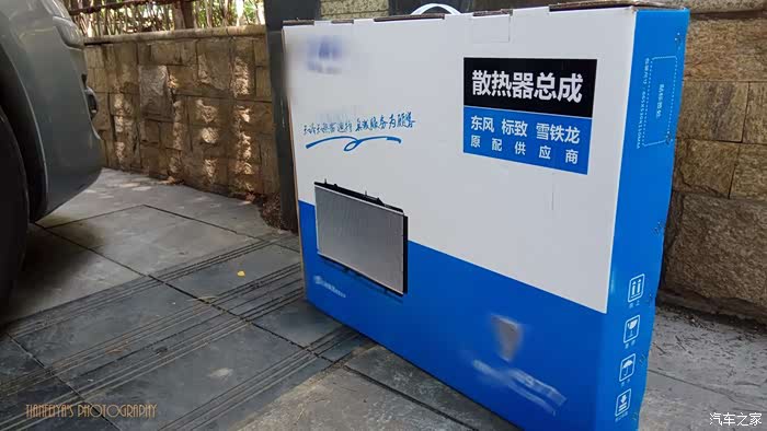 原厂的东风贝尔没货,拿的是近几年标致雪铁龙配套水箱,包装标识齐全,质量还不错。