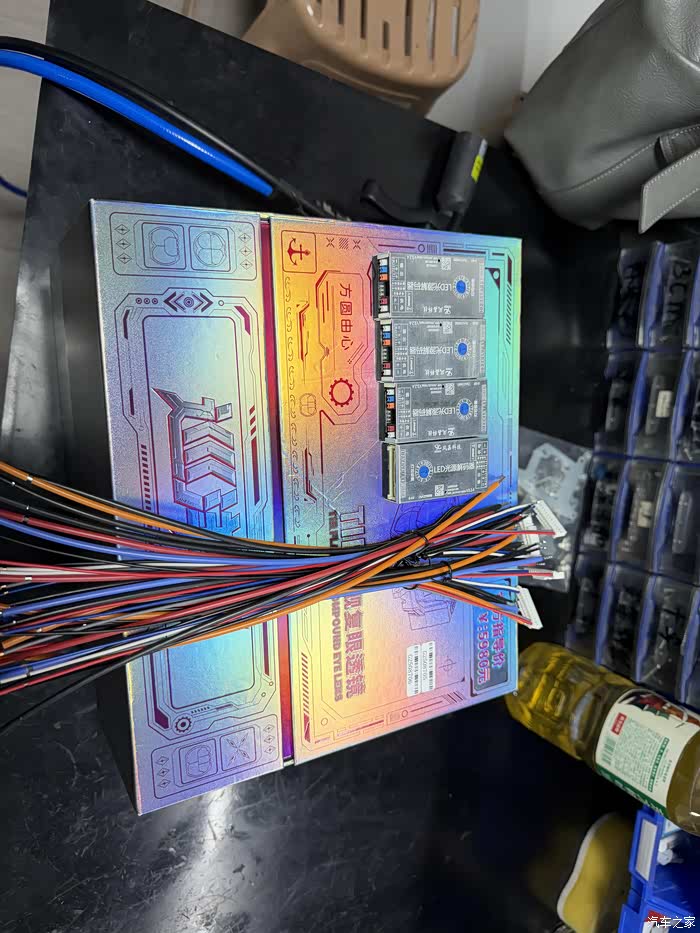 2套3寸透镜的专车支架..左上是风嘉解码器。4个。 2个负责近光 2个负责远光