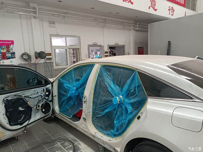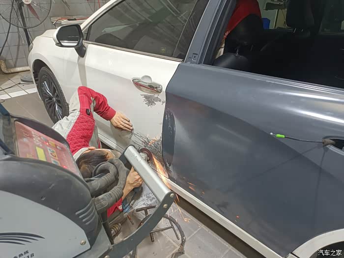 可能维修的时候影响,所以左前门的门板也被钣金的师傅拆掉了,左前门钣金好了也披上了腻子
