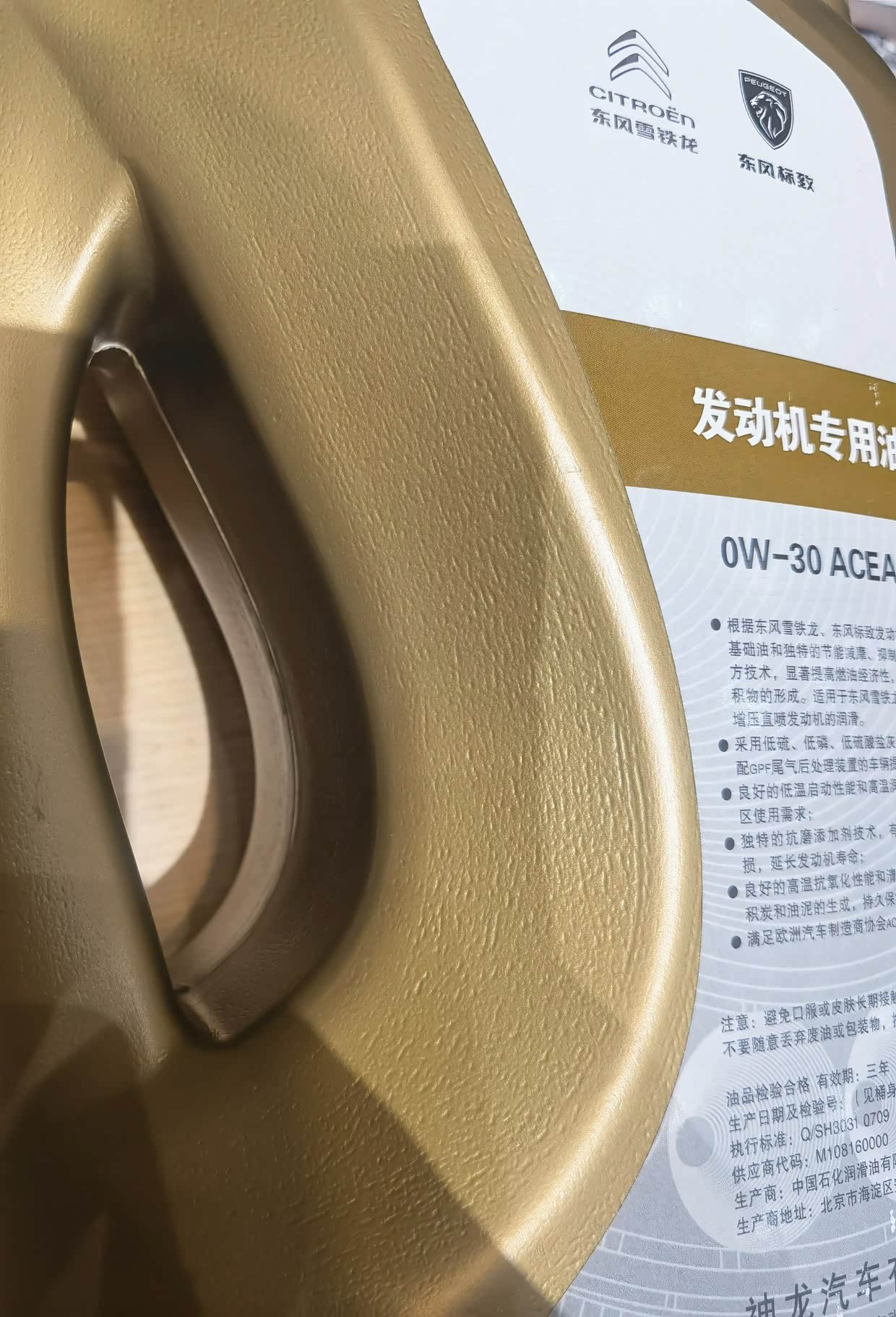 这个机油把手处很平滑 为什么在这重点说把手处的“小坑坑”呢,听标致雪铁龙服务介绍,他们原来做过机油调研,从各种平台网店,还有专修店等买过十几桶机油,让车间技师区分哪些是厂家正品哪些是假机油,技师们也没分明白,后来4S 店把这些机油做了低温试验,很多机油都暴露出了问题,大家对比发现虽然假机油模仿的很真,但是这个10几桶机油没有一个把手有这种原厂“小坑坑”的,服务顾问说这是他现在辨别机油真假的一种很快捷的方法,