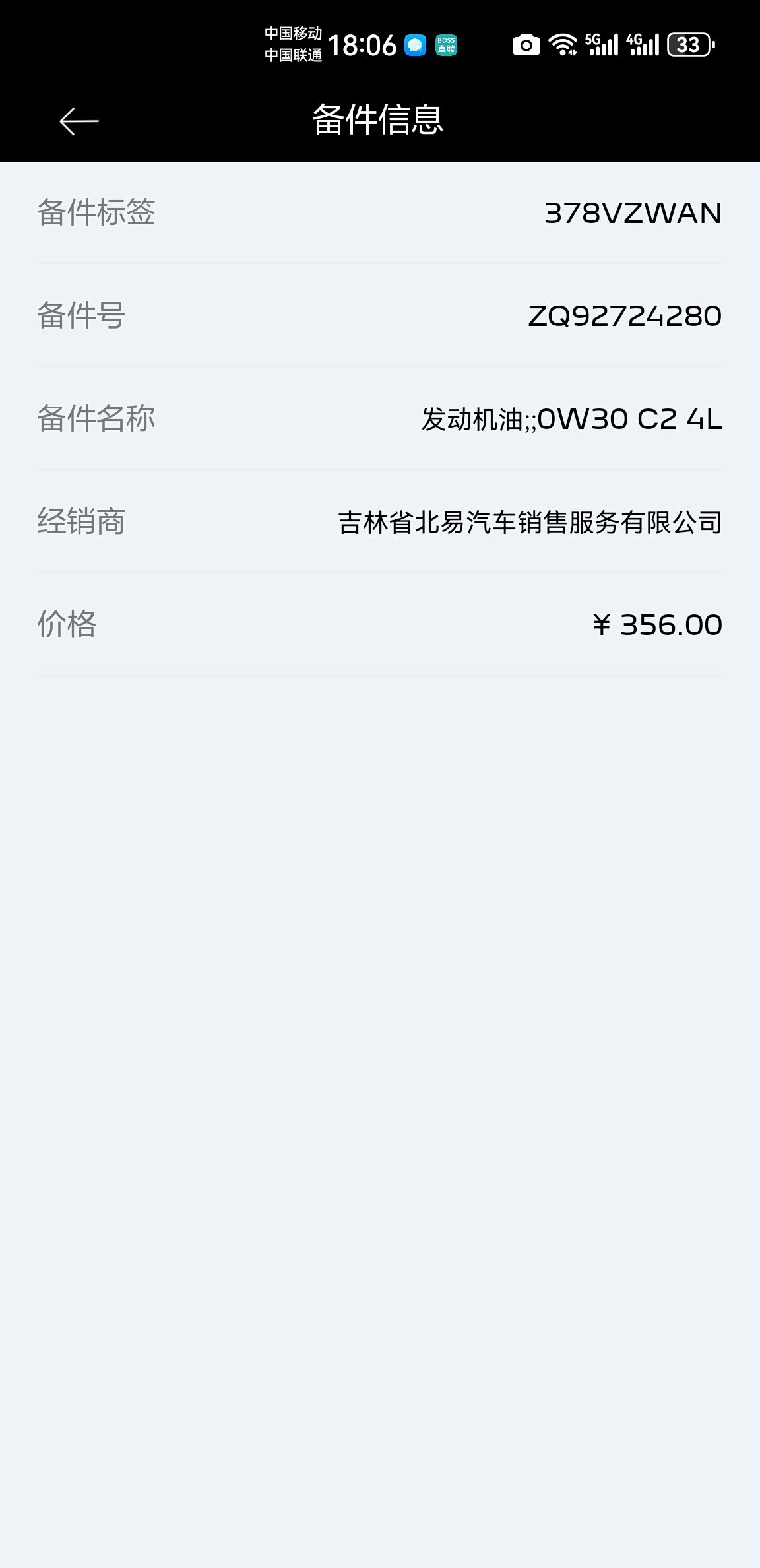 这个二维码一定要用标致雪铁龙APP里的原厂备件识别扫一下,真的会显示备件标签,备件号,备件名称,经销商和价格,假的那个机油扫二维码是啥也不显示的 ,切记用微信扫码是扫不出来的,两个码都会显示一串数字
