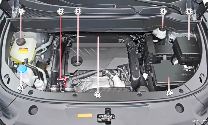 首先呢,我这辆风神AX7是5G06的发动机,查手册是这张图,也就是标号“1”位置就是防冻液,那么防冻液又是做啥的呢,简单科普一下,防冻液全称叫防冻冷却液,一方面防冻液可以防止寒冷季节停车时冷却液结冰破坏发动机,另一方面就是冷却功能啦,保证发动机在正常温度范围之内能工作。