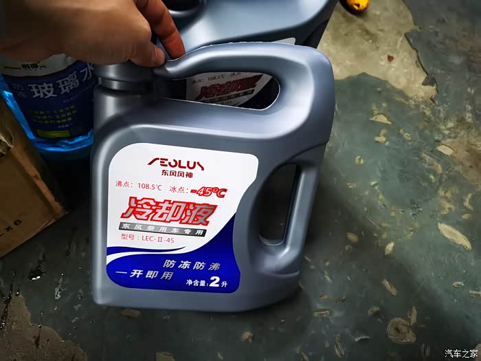 科普完了基础知识,也对上了自己车子的防冻液位置,接下来就是上货啦,我的风神AX7,是5G06机头,也是高温机头发动机,所以需要的防冻液规格也是高一些的,使用的下面这款,型号LEC-II-45,沸点108.5℃,冰点-45。这个对于我的爱车来说就很适合了,因为我安装了抬头显示,平时冬天开车水温基本都在103左右,这个108的沸点,刚好涵盖了我这个使用工况,同时满足了一定的经济性,哈哈,打工人必须追求性价比。然后我这个区域最冷不过零下5度,这个-45,绰绰有余!
