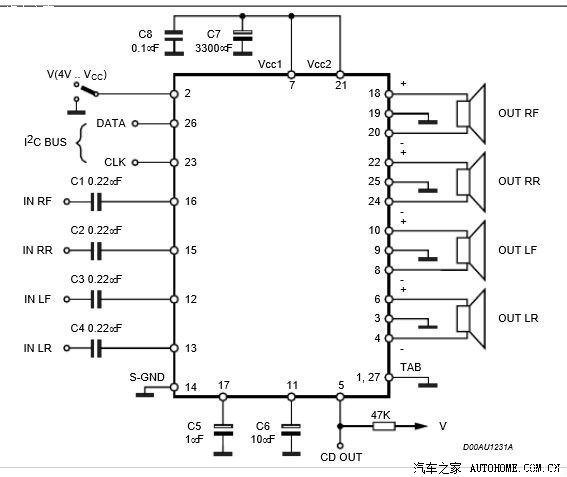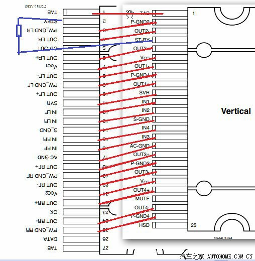 在工作台上面试了没问题的啊,回家赶紧翻资料,发现TDA7562是走CAN总线的,既这个IC没装CD机是不启动的,所以刚才装车没声音,失败是正常的。。