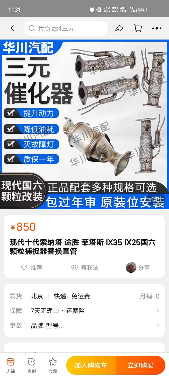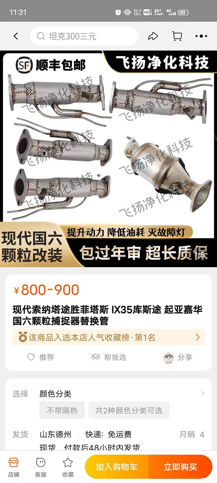 发个带隔热罩的直通管照片,这个850元,华川的。