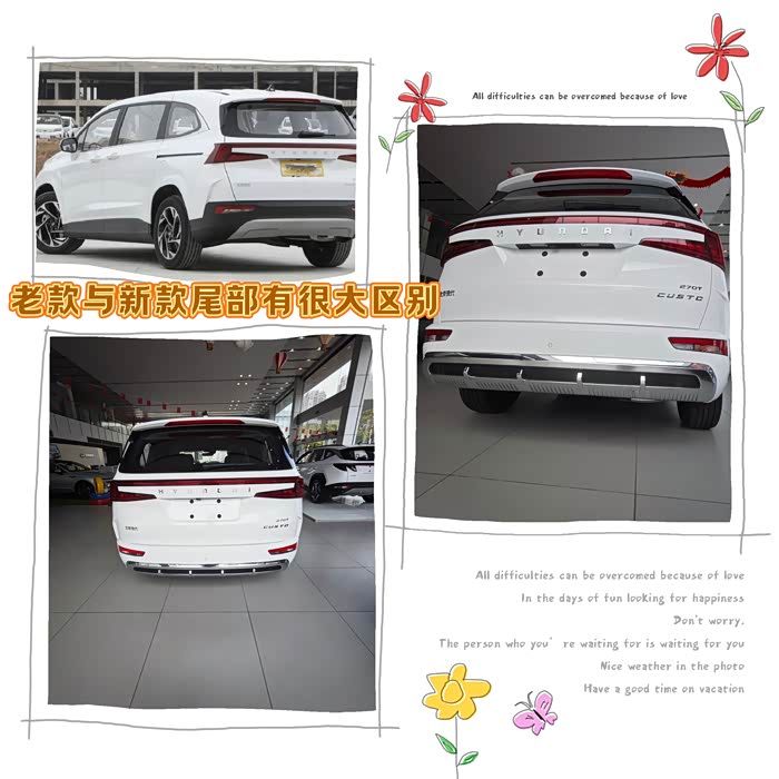 而车尾部分的改变虽然不大,但是从视觉上营造尾部给宽大方正的效果,以前尾灯组中间的黑色饰板改成车身同色的白色饰板,下方的银色保险杠换成了更宽大更长的立体双色防撞保险杠,从视觉上拉宽了尾部的宽大,让整车从视觉效果上宽敞,有了商务车的宽大气质!
