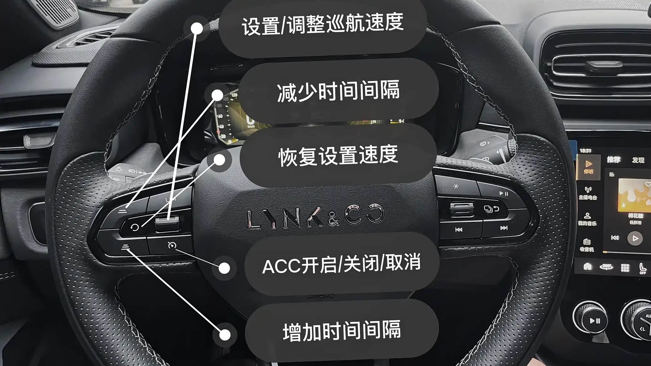 第三就是acc自适应巡航,这是我开高速最喜欢的功能,能够根据前车的速度进行调节,能够帮助我们更好的在高速上驾驶,减轻驾驶者的负担,同时配合领克的主动安全功能,提高安全系数。