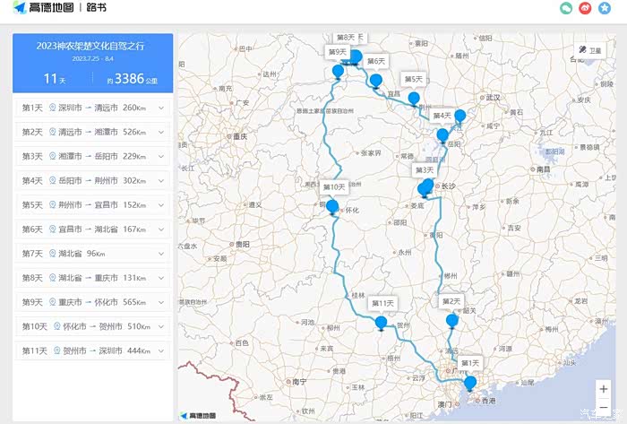本次自驾时,森林人已经陪伴了9个年头,走过了18W多公里的路,风里来雨里去,安全可靠,值得信赖。计划从深圳出发,全程一共11天,2大2小。经过湖南、湖北、重庆、广西,再返回广东,合计3386公里。