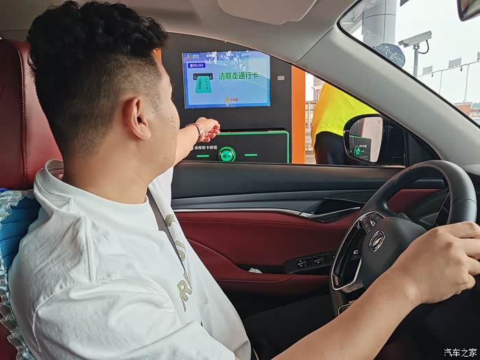 我们现在正在取ETC的卡!电视挡杆有一点好处,如果不摘挡的情况下,我们打开车门,档位就会自动回到p的,安全可靠