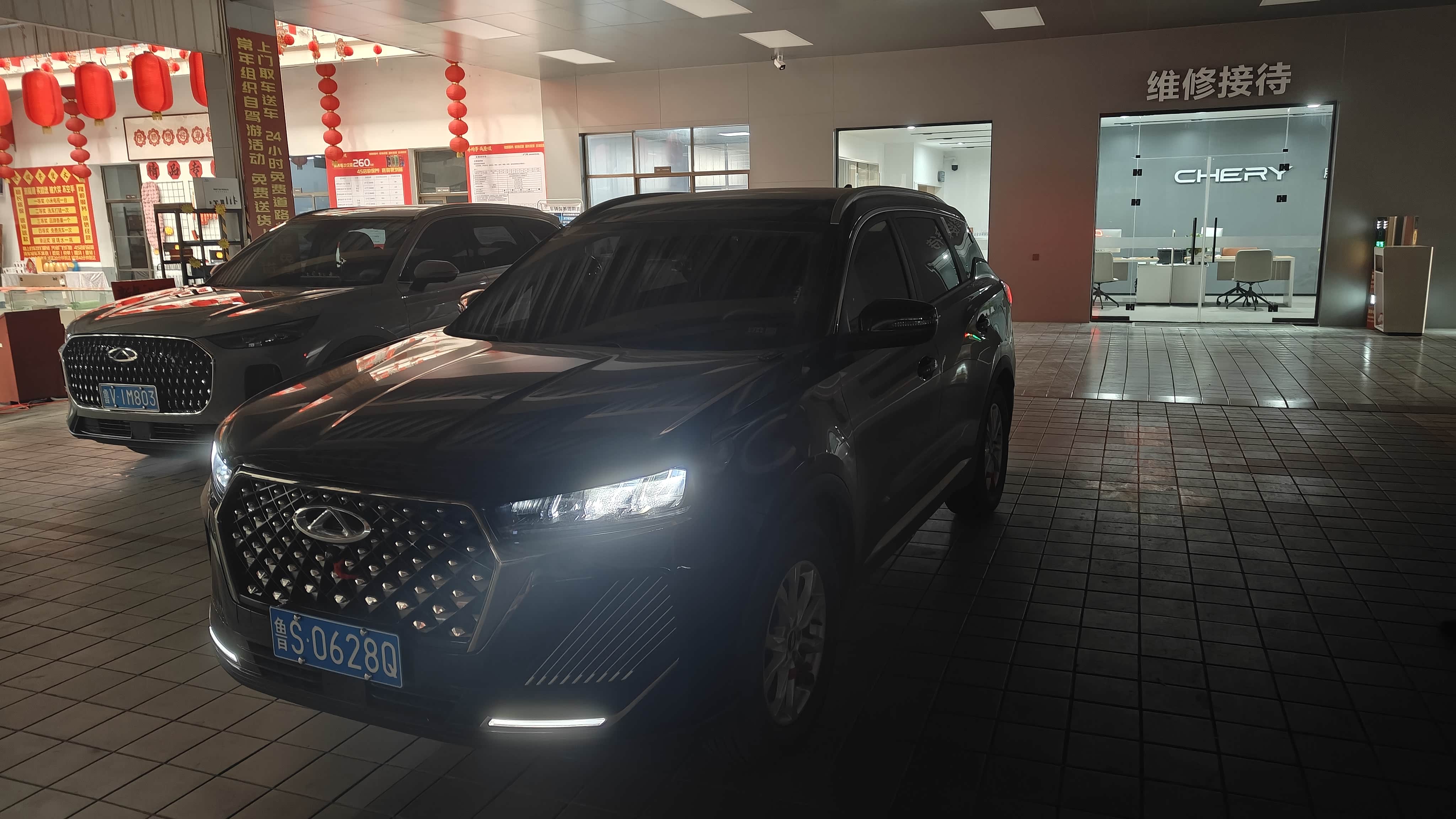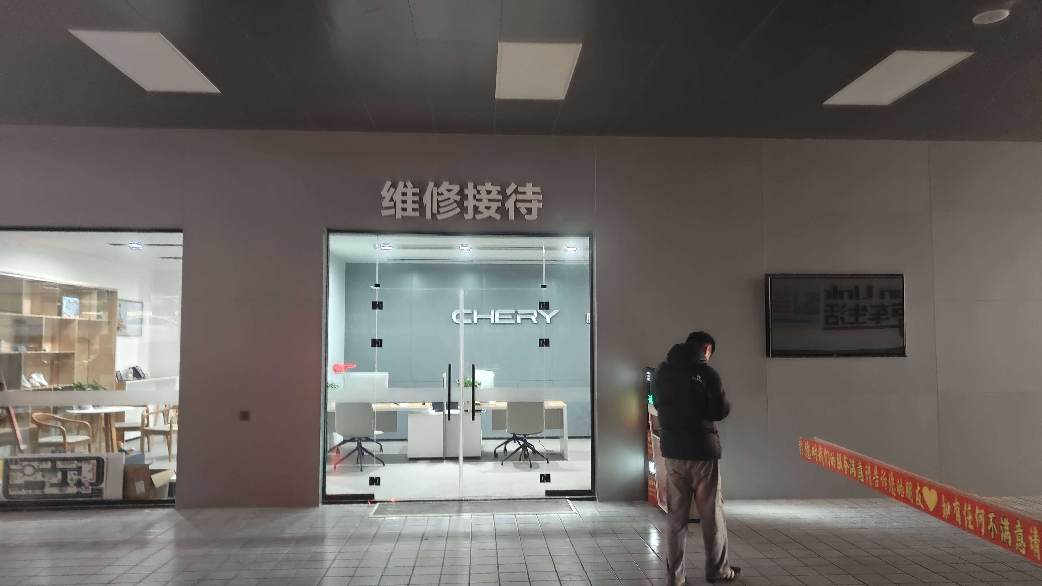 到了4S店的维修接待区,把车钥匙交给工作人员,他们就把我的瑞虎7开进了维修车间。我闲着没事,就跟着进去看了看。