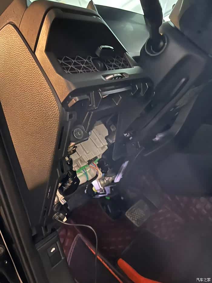 拆开了保险盒的外盖,线束太多,眼花,我是看不懂,哈哈,就帮他照个手电吧。