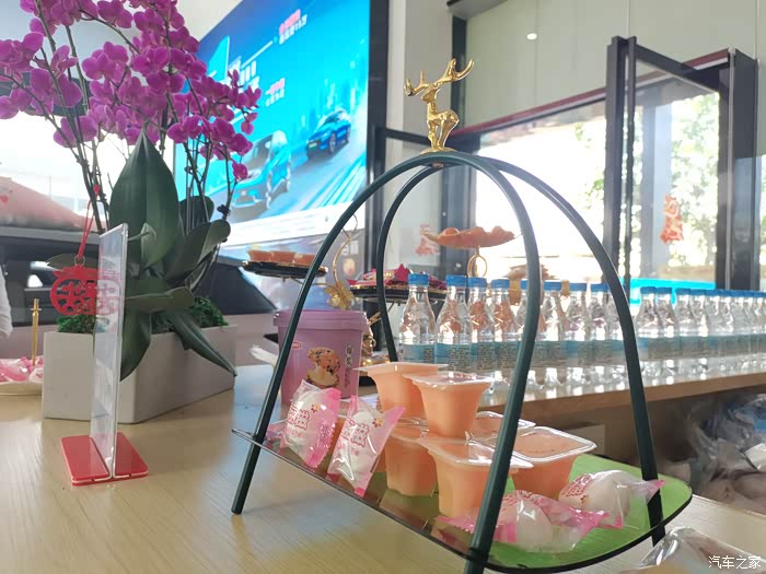 吃点下午茶再来体验车,实在是看车人太多,我还是先喝点水好。