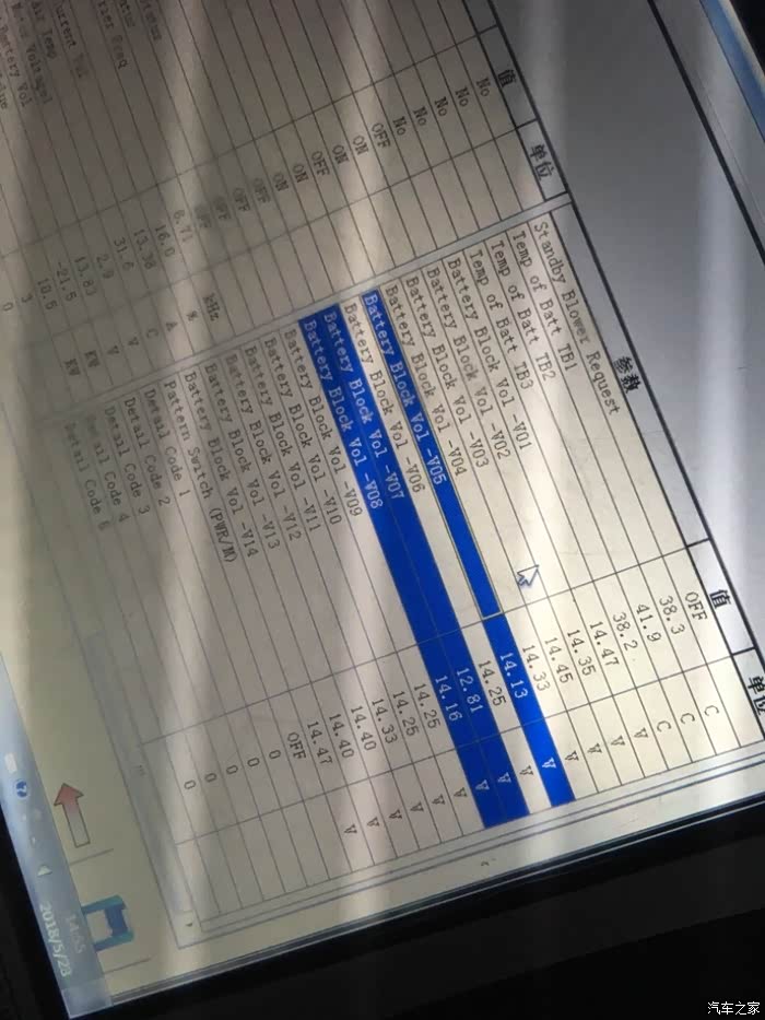 锡焊不过关造成故障,诊断的电池组显示结果。