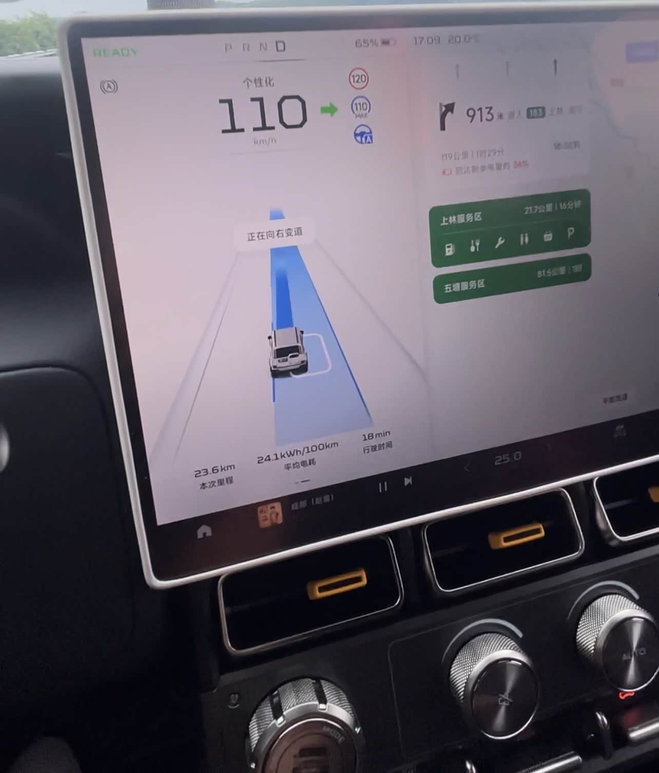 可能由于新车的原因,正常开空调城市续航基本可以达成百分之八九十,由于装有家充,我基本在百分之三十就充电了,从满电到剩余百分之三十,市区的续航达成率基本百分百,表显还有多,百分之三十往下就没有具体测过,续航可能掉得快点。