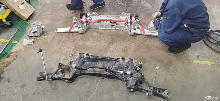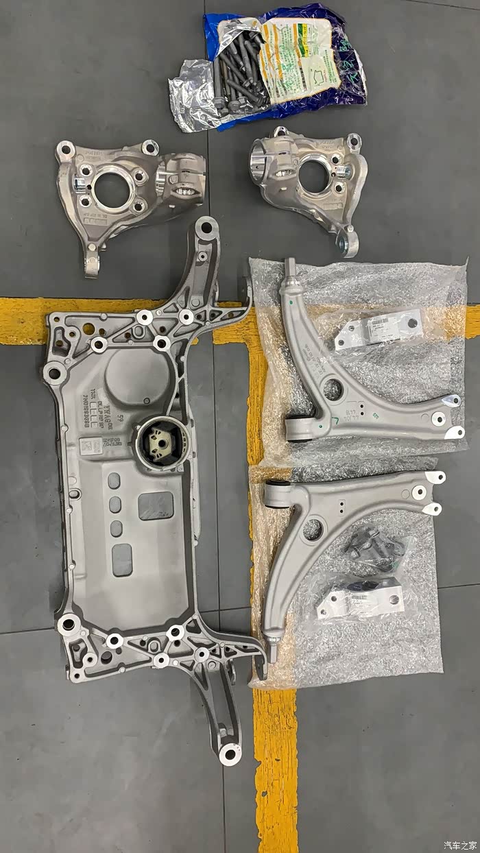 前方车友的前轮套装。都是原厂的。铝下摆臂(三角臂),铝元宝梁,前铝羊角