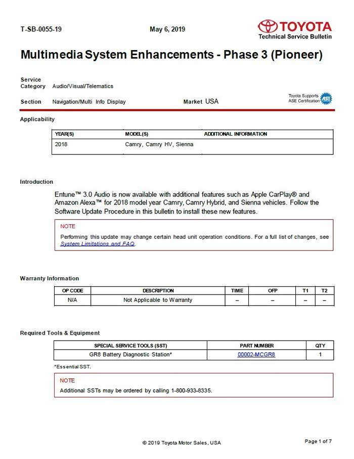 加拿大卖的Camry也是和美国市场一样的,不过我看到某消息(忘了出处了)说这个升级软件并不适用于加拿大的CAMRY。所以如果官方不给澳大利亚升,也只能靠有人把软件直接从车机里读出来再刷到各位的机器上了。