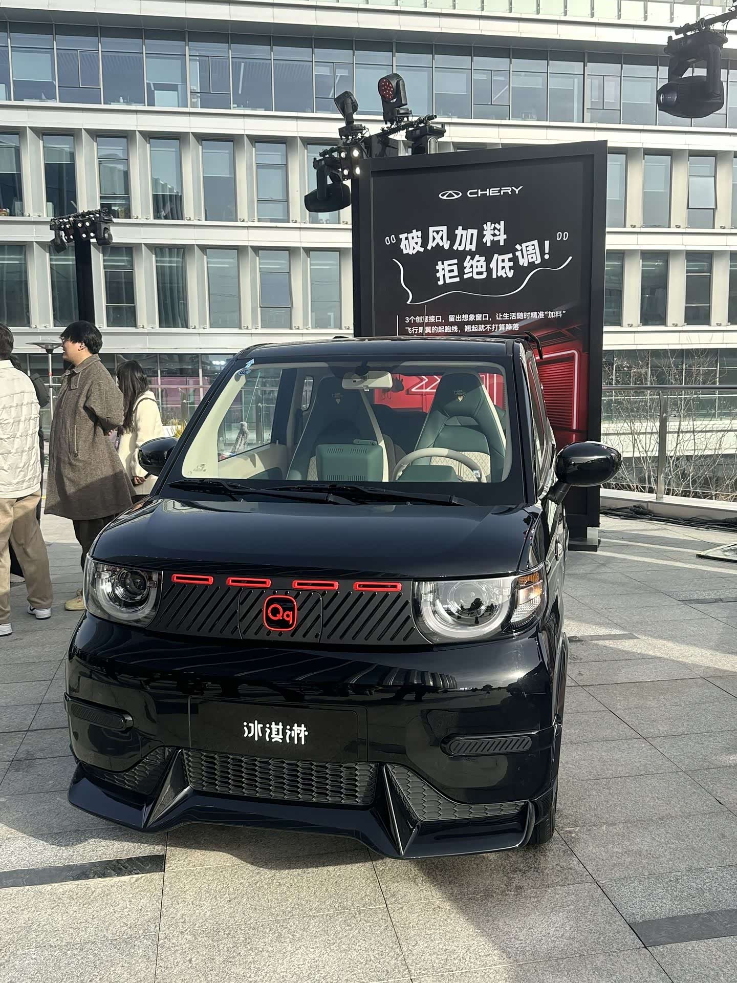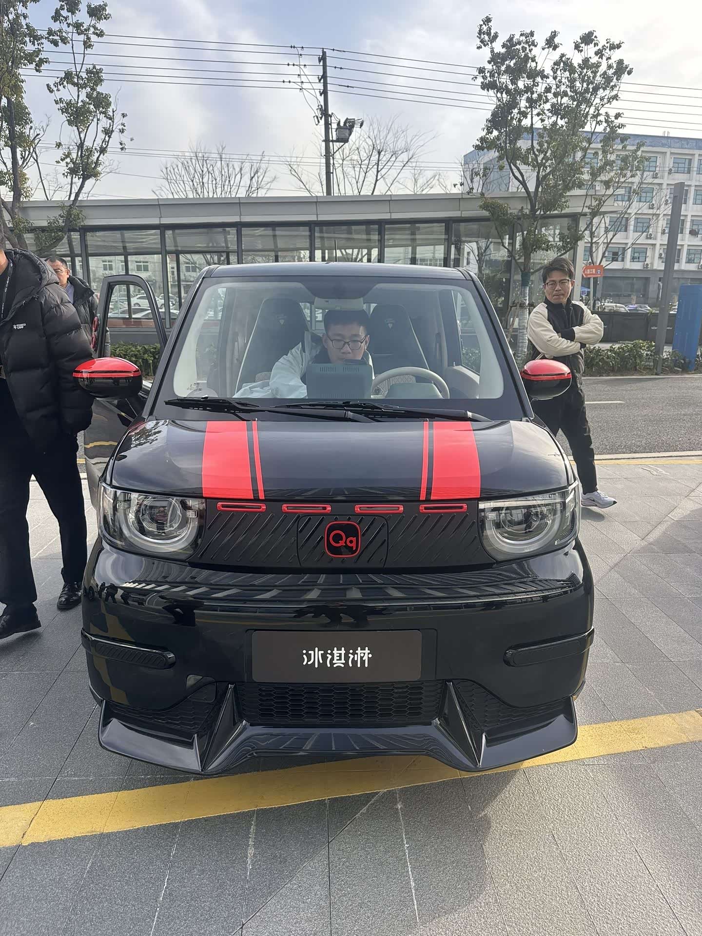 我试驾的是QQ冰淇淋竞速版,车身颜色就一种是全是黑色的。这个小车整体看起来很有运动感和个性。原价是4.89万元,国补最低价是3.79万元,因为今年国补的改变对这种小型车也是一种打击吧。没有去年买性价比。