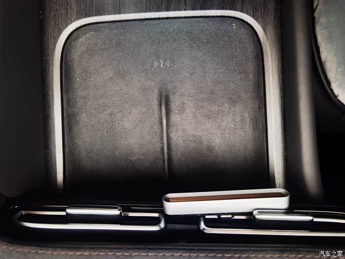 二、不支持车载手机无线充电。其实我是挺喜欢荣威D7中控扶手台的设计布局的,平整大气,扶手箱空间很大,但台控上虽然有可以放置两部手机的置物处,却不支持手机无线充电,档次感差了那么一点点!