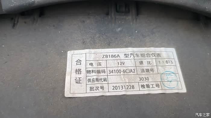 型号:ZB186A 型物料编码:34100-6CJA2核心参数:电压 12V(汽车通用)、速比 1:613(北斗星 X5 的标准里程速比,保证里程计数准确)生产时间:20131228(2013 年 12 月 28 日批次)