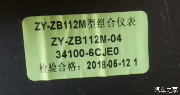 型号:ZY-ZB112M 型(后缀 - 04 是批次号)物料编码:34100-6CJE0(北斗星 X5 组合仪表的专用编码)生产时间:2018-05-12