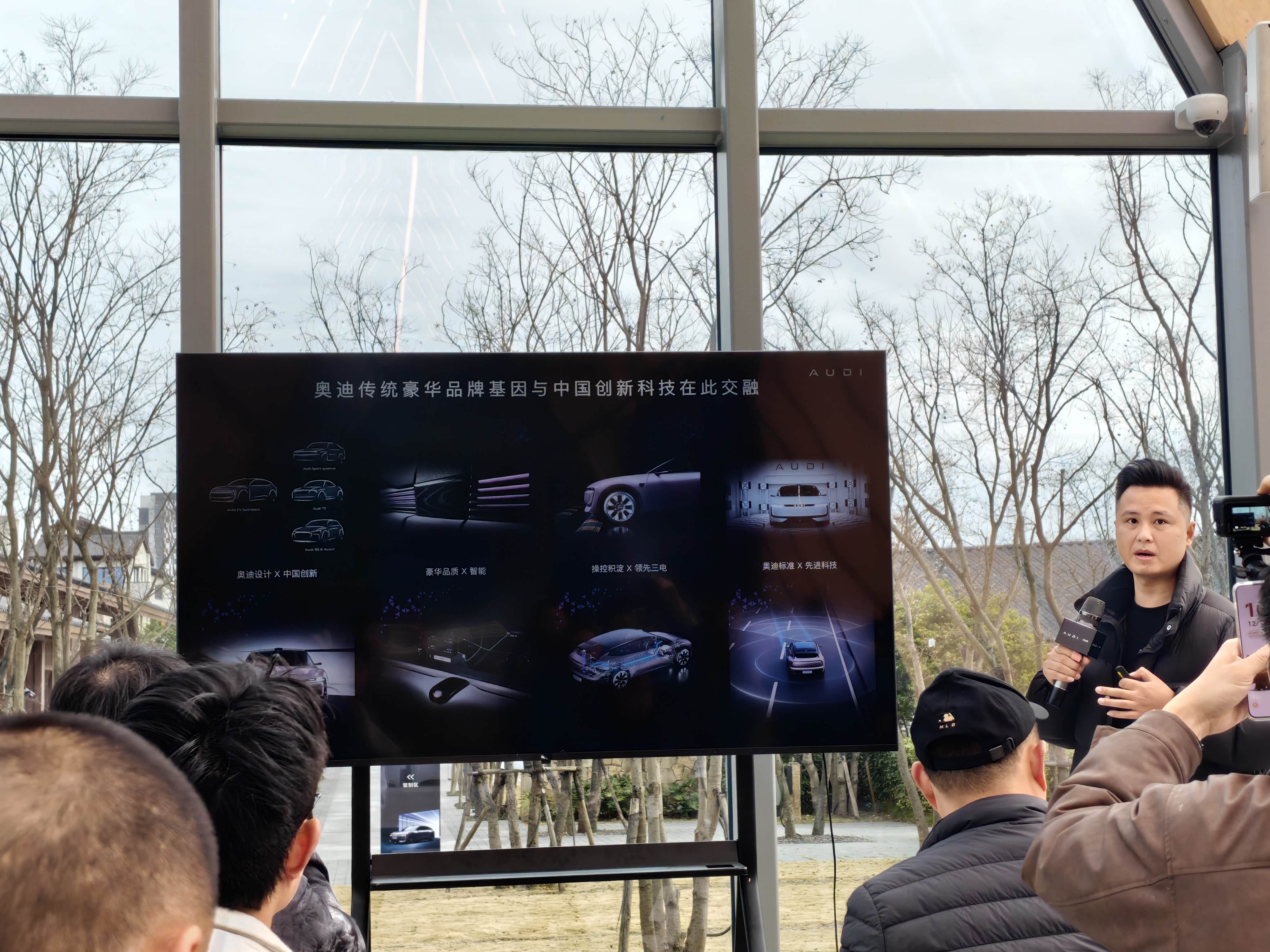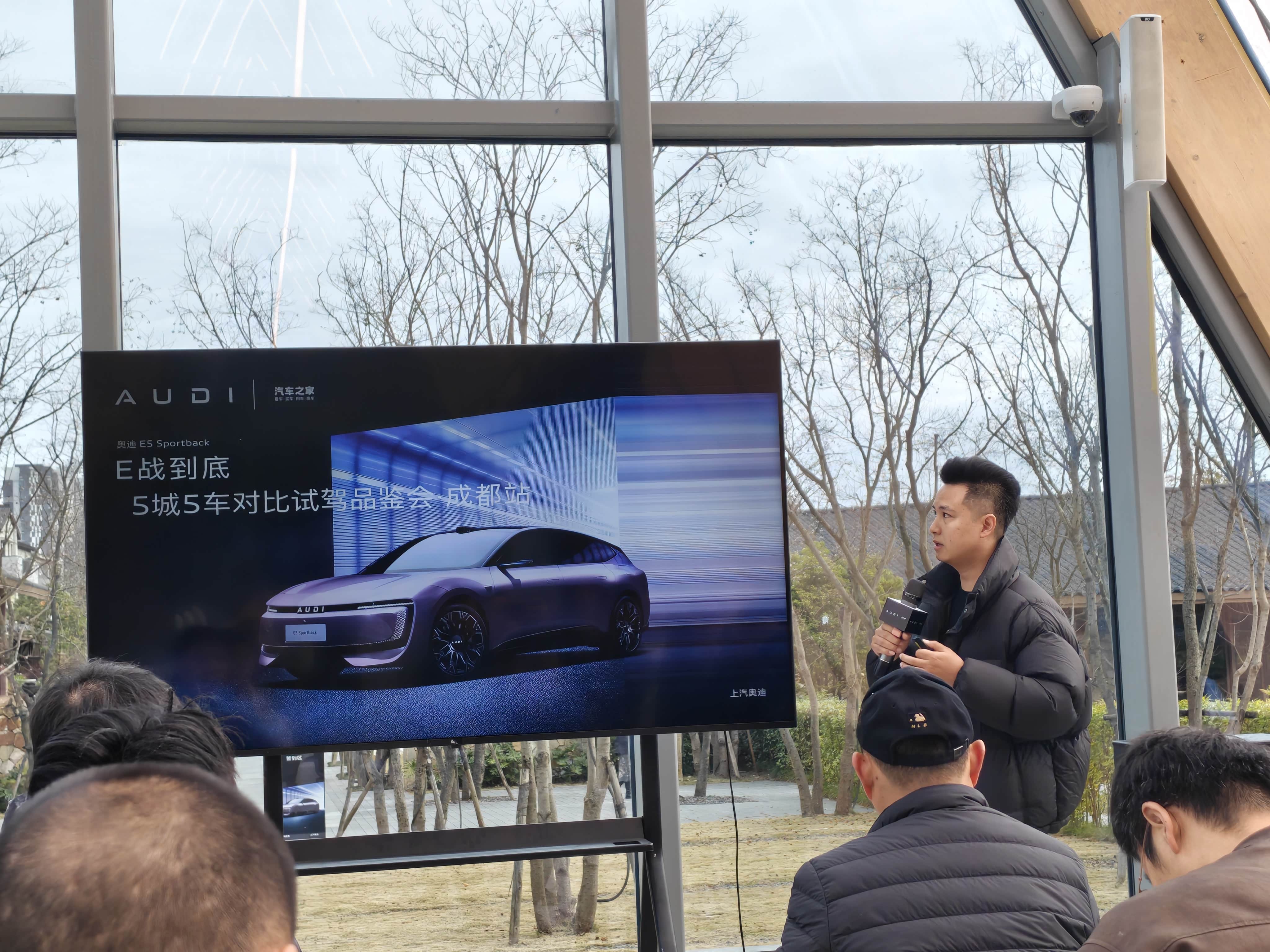 今天试驾收货挺多,美女姐姐主持人快速开场后让品牌方负责人对奥迪E5 Sportback的设计理念和用料,配置进行详细介绍后,咱们移步到实车面前: