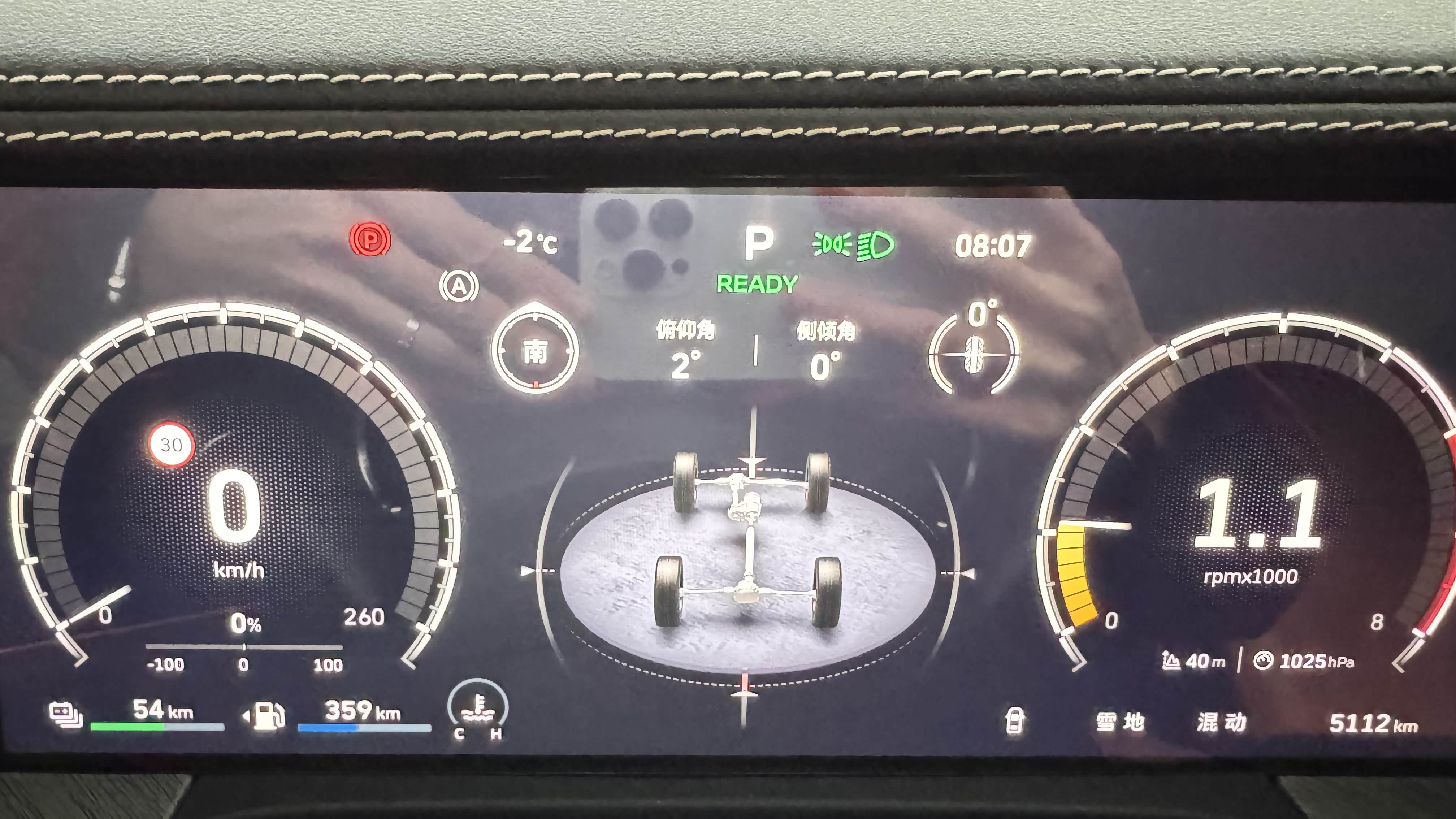 武汉早高峰的高架结冰路段是最大痛点,而坦克500 Hi4-T的雪地模式堪称“破冰神器”。切入模式后,系统自动切换二挡起步,柔和的动力输出从根源抑制打滑,即便碾过混着冰粒的湿雪路面,暴雪后,三环线高架匝道结冰,不少小车原地打滑,而这台车凭借智能四驱稳系统,过弯时车身侧倾极小,转向精准不飘,全程稳稳当当。